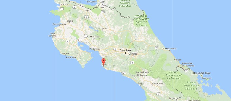 O epicentro do terremoto se localizou 16 km ao sudeste da cidade de Jaco, com uma profundidade de 10 km.